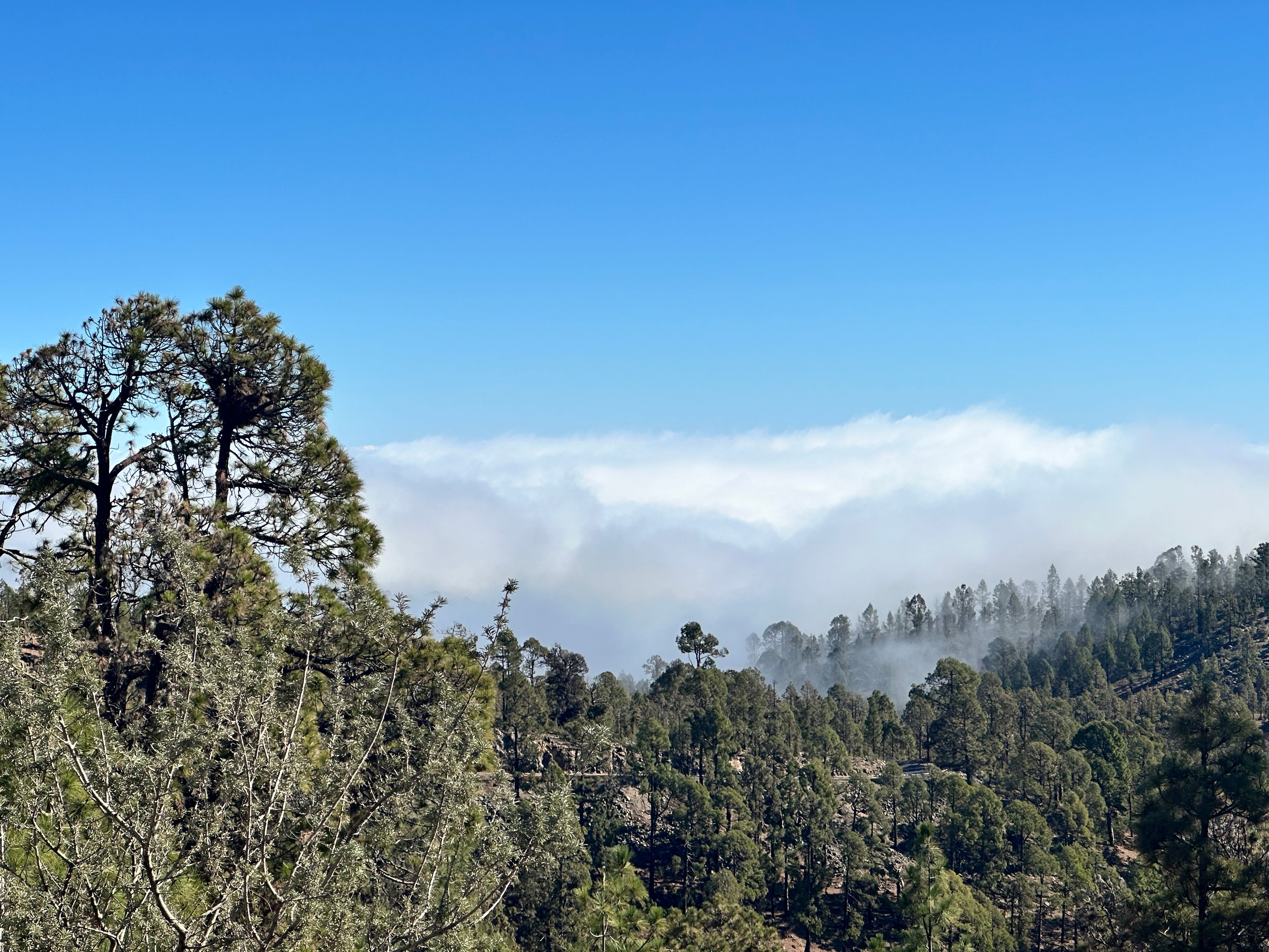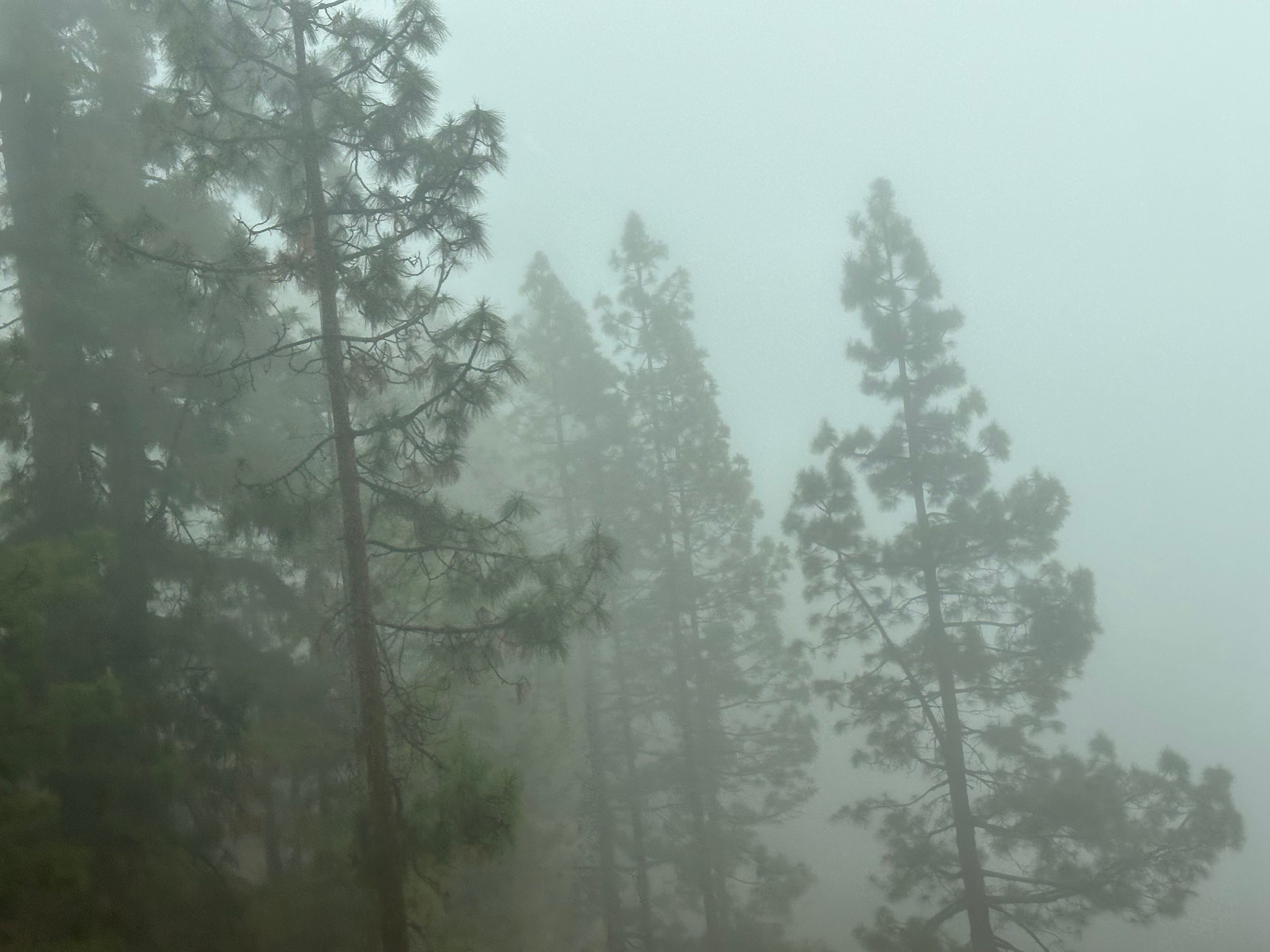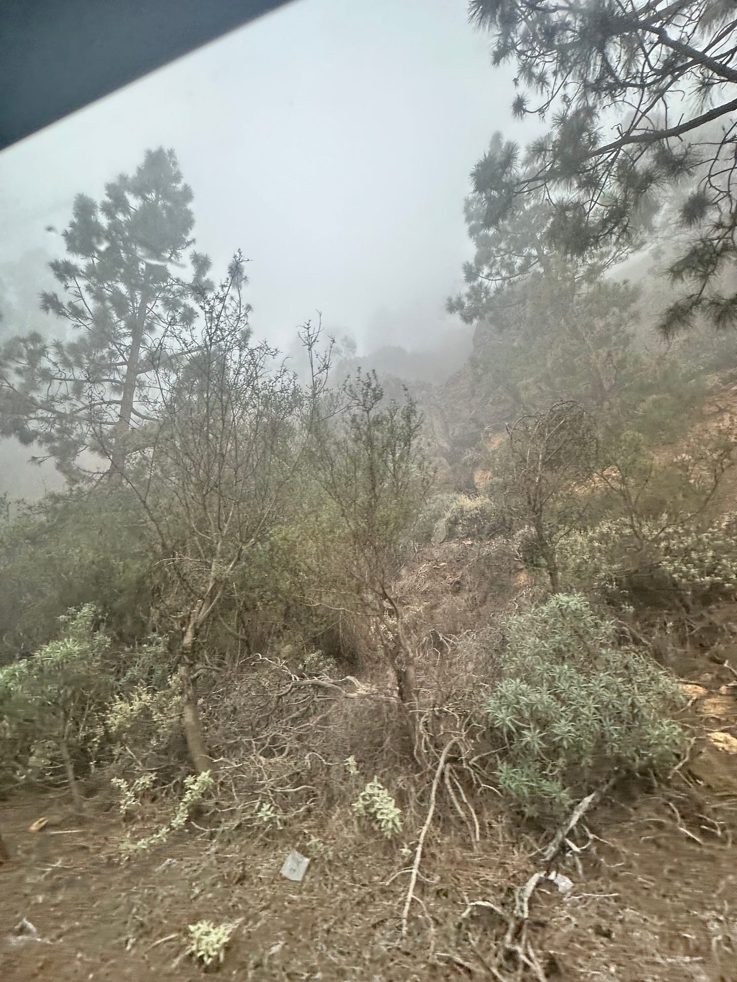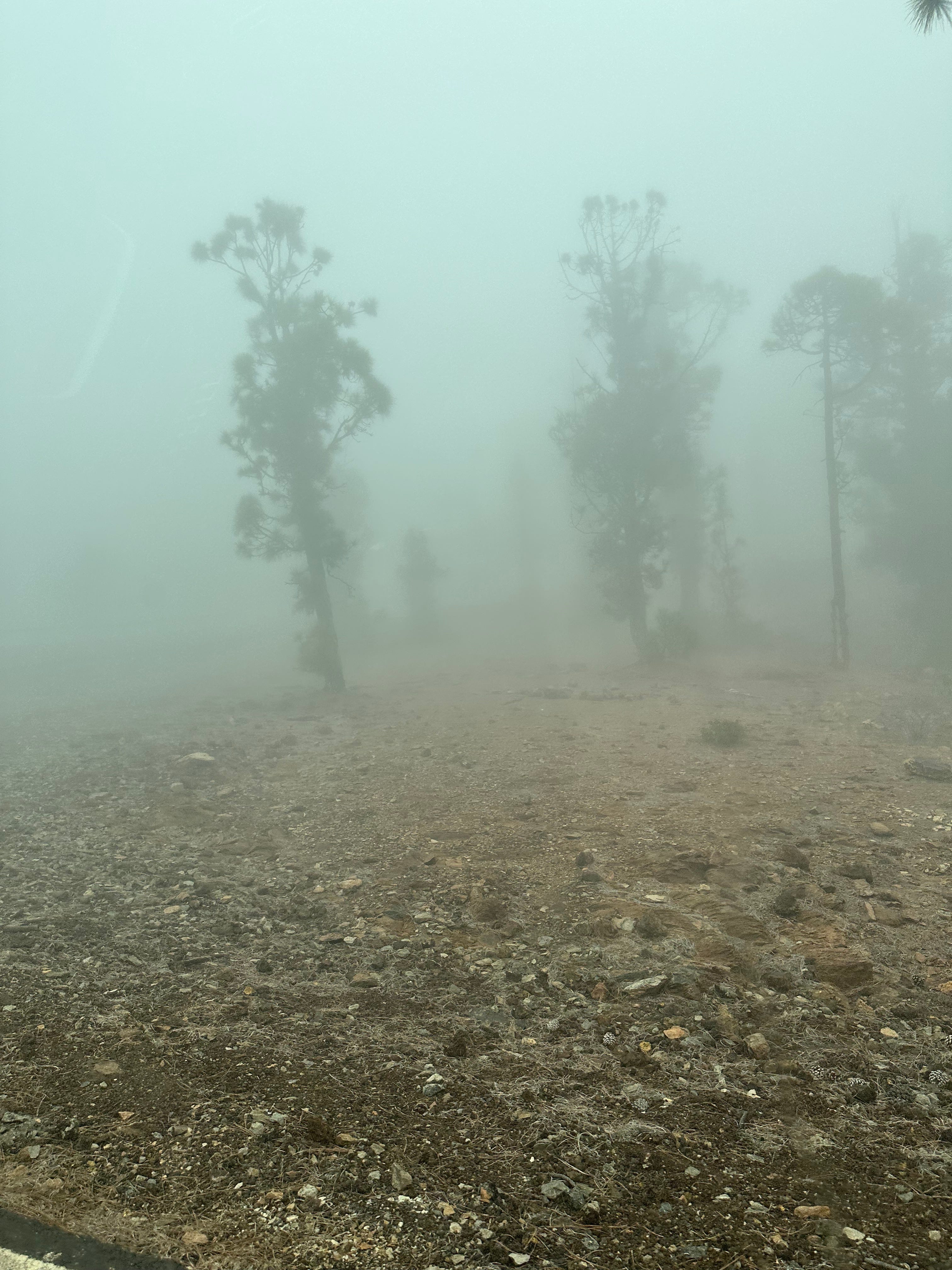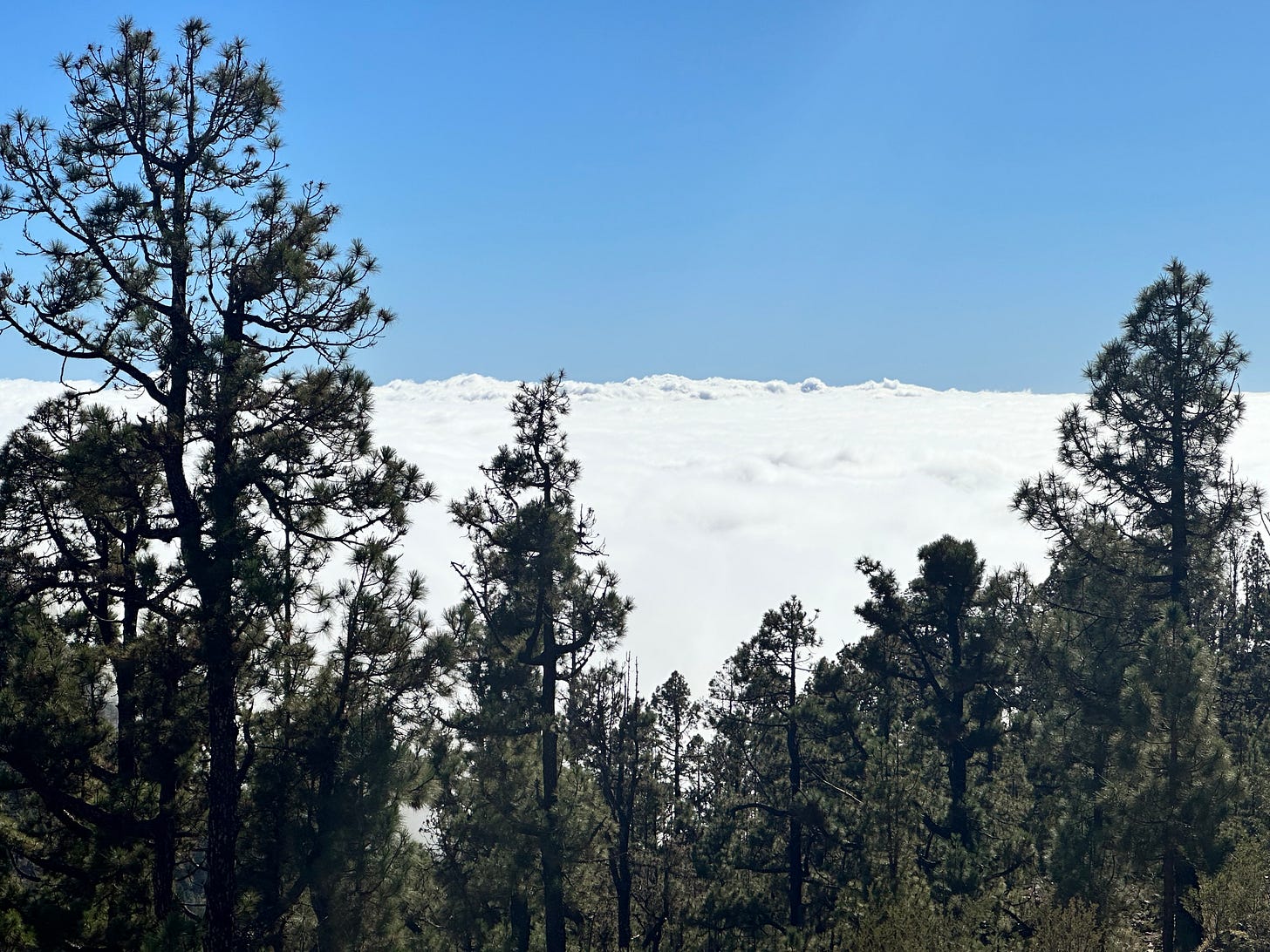first the view as we started the drive then as we entered the cloud, suddenly we’re in a very eerie movie about eg encountering your past and future selves in a strange wood things looming up out of the mist perfect place to bury a love rival? I’m sure in the sunshine that is just a very nice mattress/sofa to sit on in the sun. but in the cloud, extremely eerie what’s in those woods? oh, just the past and the god Pan. the god Pan lives up there. these trees don’t like you. they’ve been here for hundreds of years and they just. don’t like you. but suddenly, is that blue in the sky? could be, though it’s all still looking a bit sinister no that’s definitely blue literally, there are the clouds at the edge of the road you can look down on them. the valley is a bowlful of cloud like a bowl of whipped cream literally there’s the cloud looks like you could walk on it (don’t try) I don’t know why this mountain is glowing like that, but there we go it’s Tenerife. it’s actual Tenerife. Tenerife. Which until a few years ago I thought of as the most boring Anglo holiday destination in the world. Shows what I know.