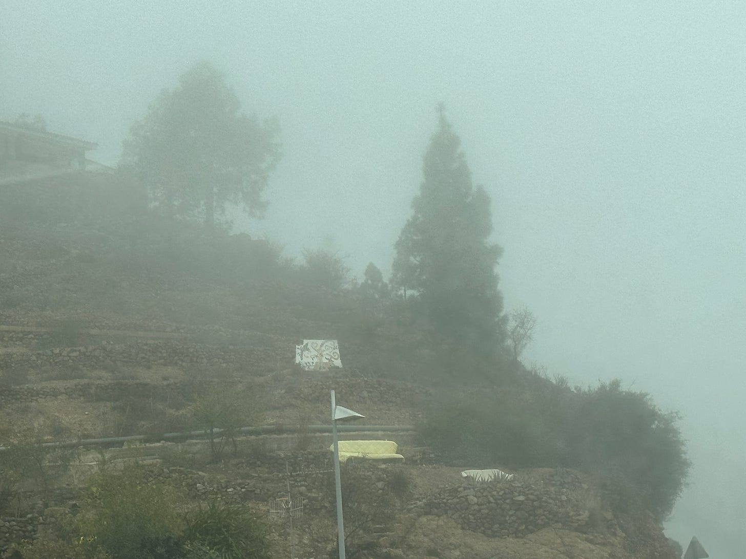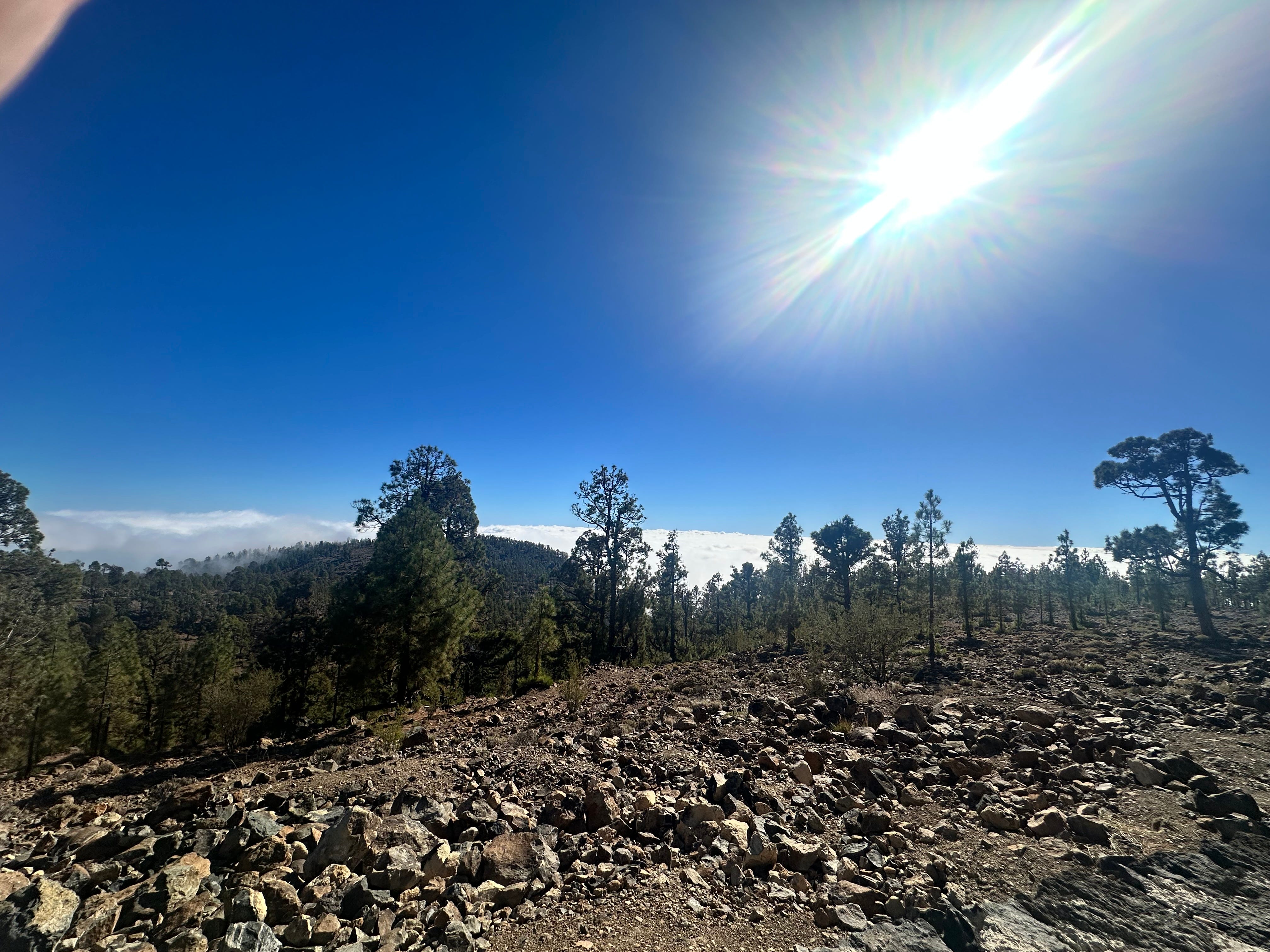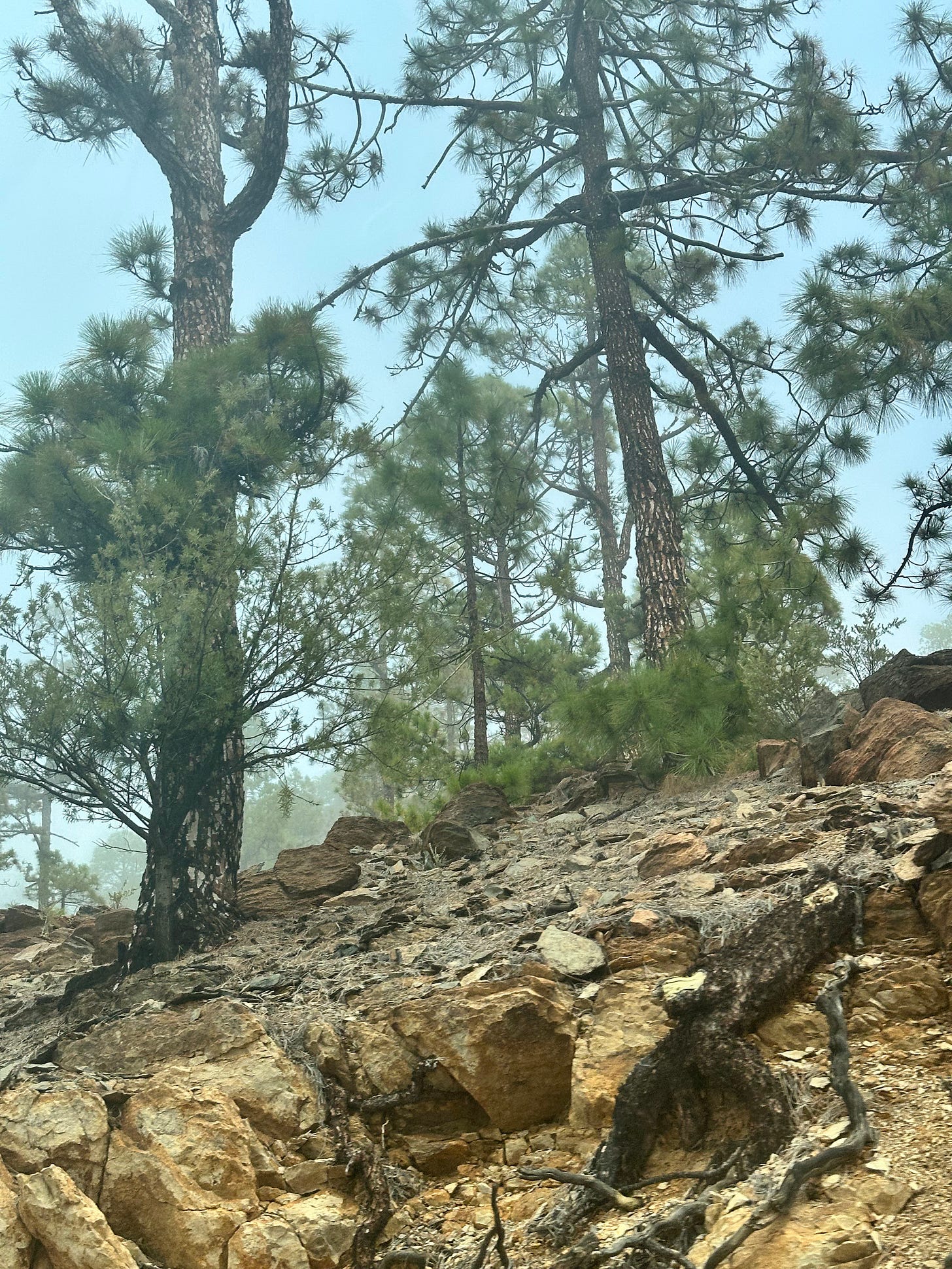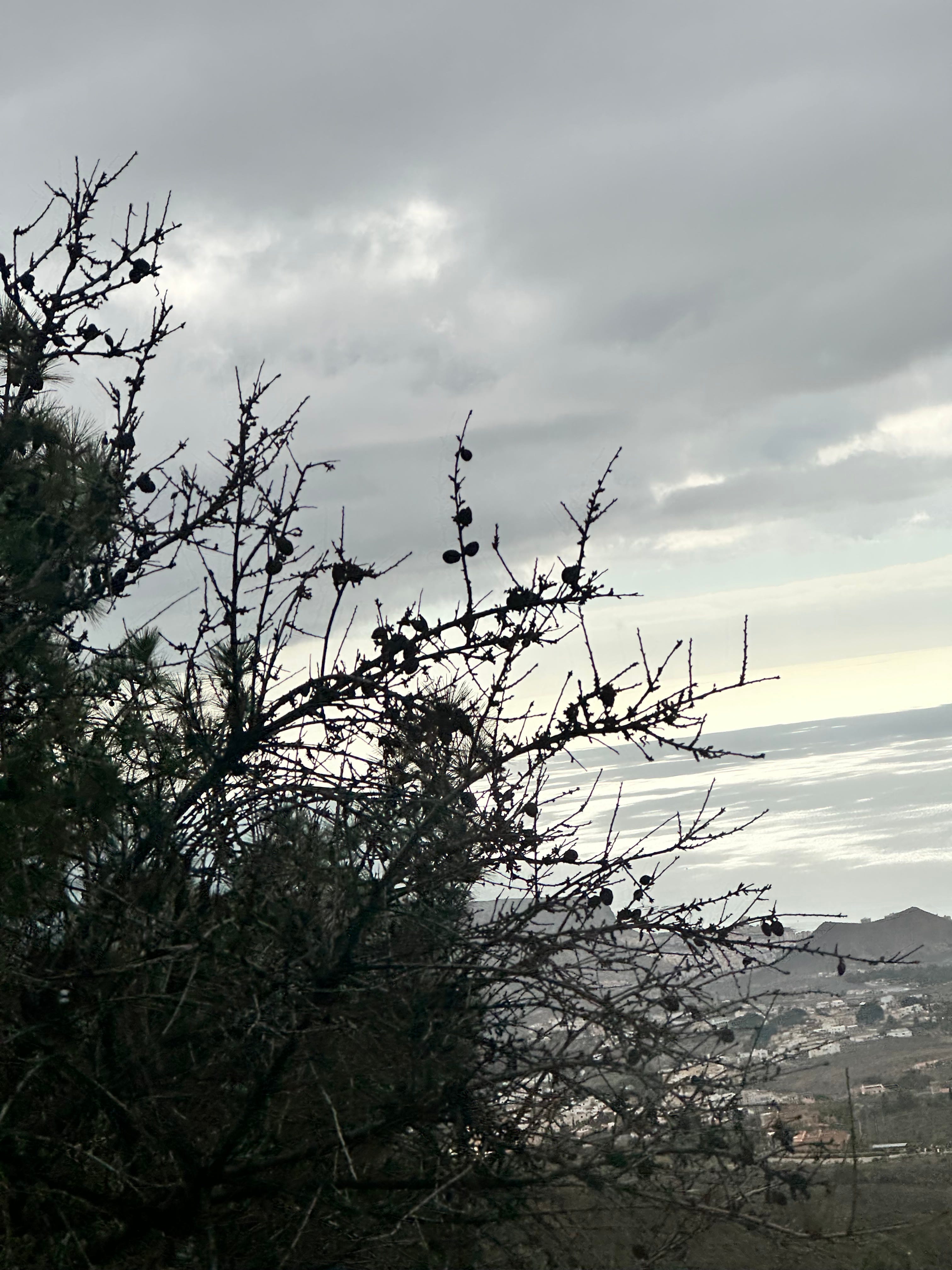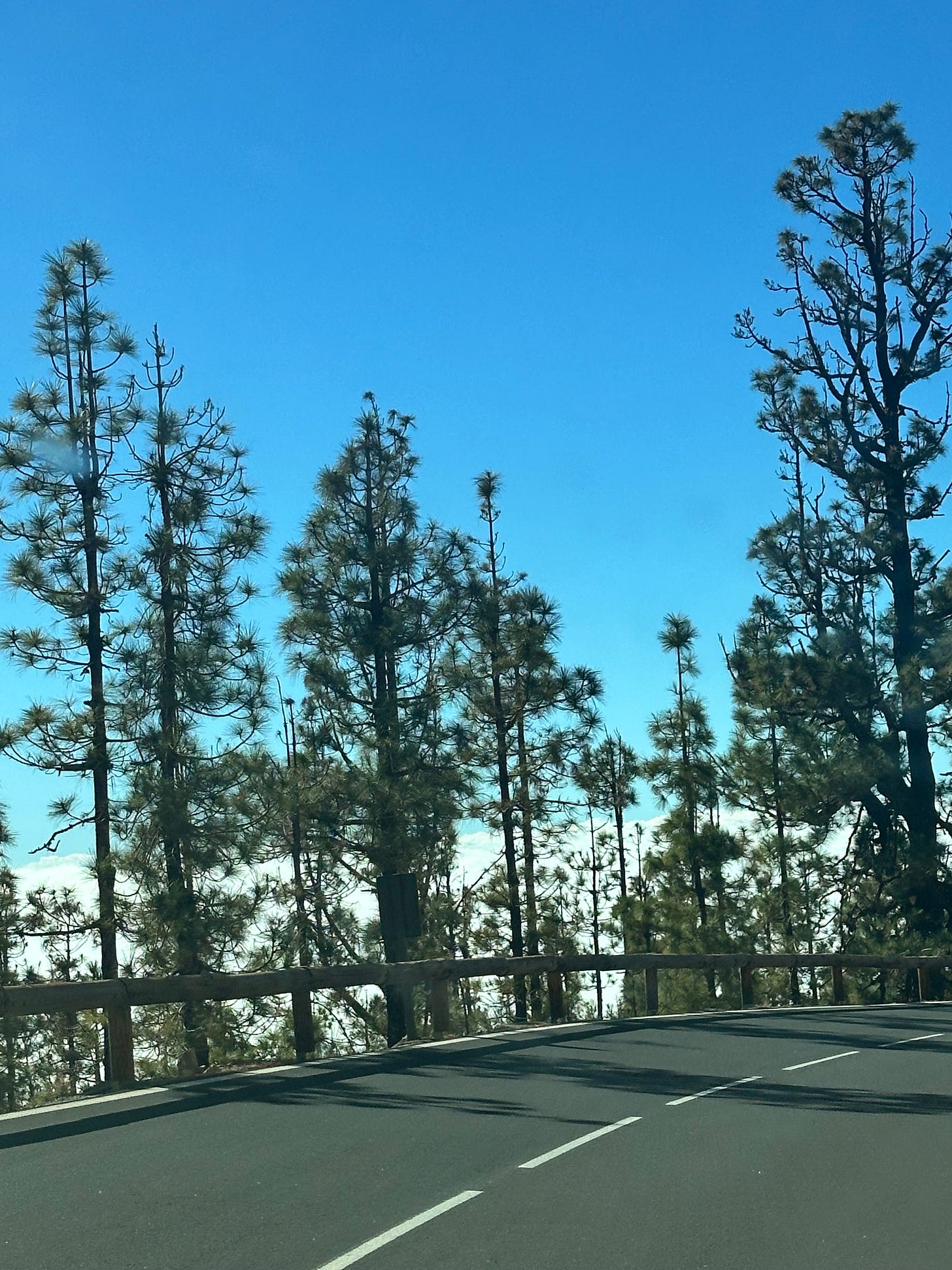 first the view as we started the drive then as we entered the cloud, suddenly we’re in a very eerie movie about eg encountering your past and future selves in a strange wood things looming up out of the mist perfect place to bury a love rival? I’m sure in the sunshine that is just a very nice mattress/sofa to sit on in the sun. but in the cloud, extremely eerie what’s in those woods? oh, just the past and the god Pan. the god Pan lives up there. these trees don’t like you. they’ve been here for hundreds of years and they just. don’t like you. but suddenly, is that blue in the sky? could be, though it’s all still looking a bit sinister no that’s definitely blue literally, there are the clouds at the edge of the road you can look down on them. the valley is a bowlful of cloud like a bowl of whipped cream literally there’s the cloud looks like you could walk on it (don’t try) I don’t know why this mountain is glowing like that, but there we go it’s Tenerife. it’s actual Tenerife. Tenerife. Which until a few years ago I thought of as the most boring Anglo holiday destination in the world. Shows what I know.